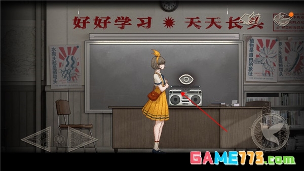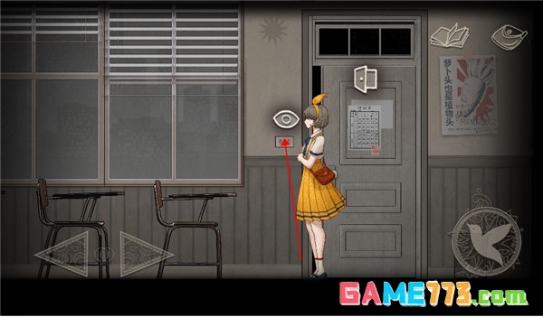 10、向左走,来到教室第一个门口,点击开关(变为彩色环境),