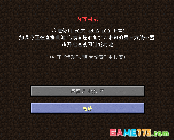 mcjs网页版秒玩入口:https://play.mc.js.cool/1.8/