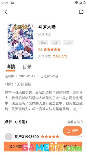 1、在首页或分类里找到想缓存的漫画并进入详情页