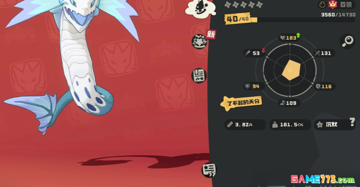 暗影冰龙王种族值总和达到800点,目前版本属于顶尖水平。具体来看,精力144点、攻击135点、防御125点、魔攻118点、魔抗138点、速度140点。这样分布使速度、精力成为它的最大特点,攻击力也较强。尽管双抗没有特别夸张,但是都保持在120以上,整体属性非常均衡,没有明显的短板。