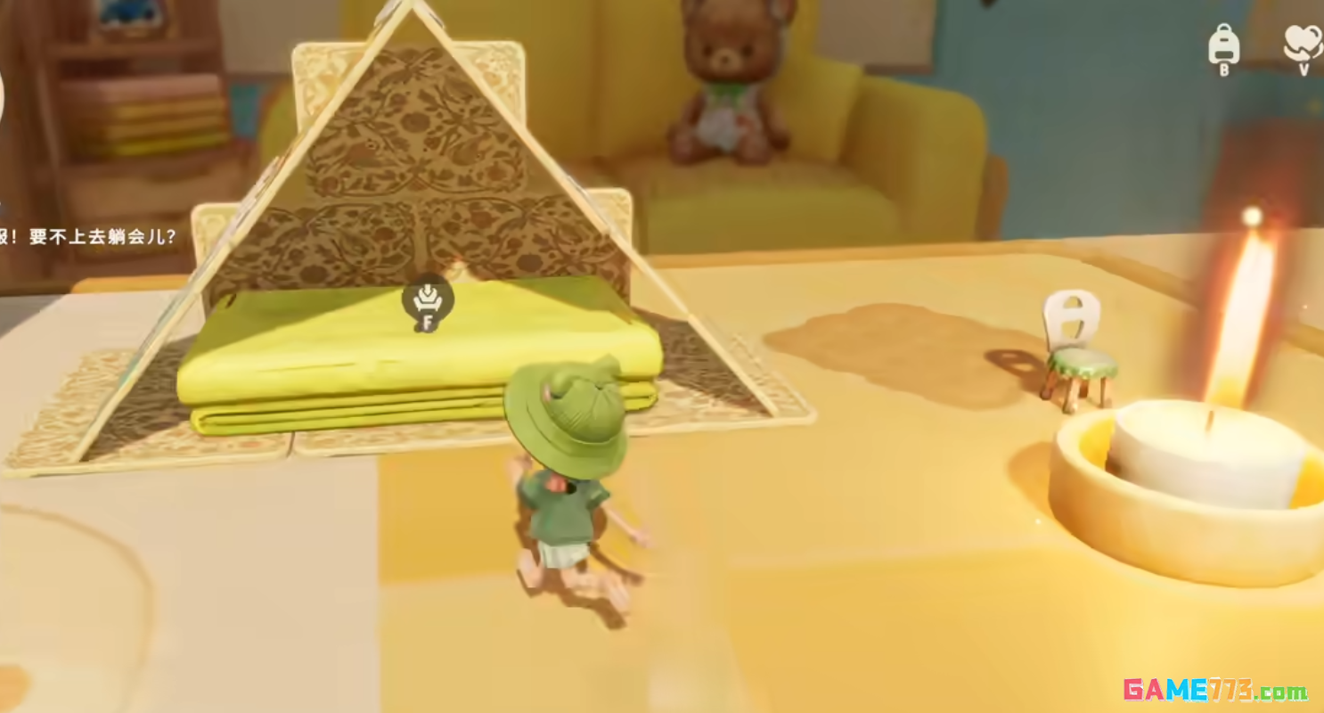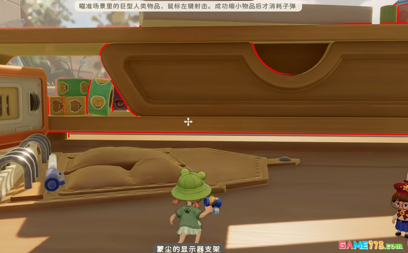 变形枪的具体用法很简单。在探索像是书桌、窗台等场景的时候,将准星瞄准原来那些巨大的日常物品,使用缩小枪发射,准星射满后物体会瞬间吸收并缩小,然后转化在背包中。在游戏世界中,你可以把缩小的巧克力棒变成建造房屋的横梁,用纸牌搭出一座小小的帐篷,还能在帐篷里美美的睡一觉。