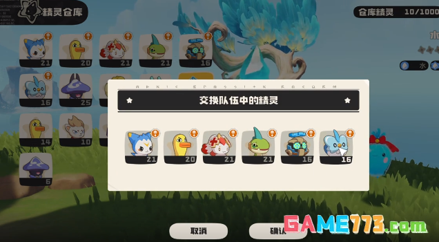 在点击之后,玩家就可以看到背包中所有的精灵这个界面是比较实用的,玩家可以在这个界面自由的去交换精灵。例如可以交换背包,还有仓库中的精灵,如果打算去挑战强大的boss,也可以把背包中一些等级相对低的精灵全部都放入到仓库中,然后去更换成战斗力比较出色的。