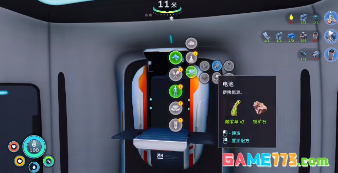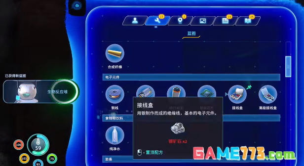 在合成的过程中,还需要一些核心的组件,例如智能芯片,电池,还有接线盒。这三个组件都需要提前的收集,好在所有的原材料都可以在初始的浅水地带找到。这里的地形比较平缓,没有强力的敌对生物,而且能见度也会比较高。是新手一开始采集物资的好选择,并不需要冒险深入深海。电池的制作还需要铜矿石以及酸性蘑菇,逃生舱周围的深海区域还可以看到一些裸露的铜矿石,那些酸性的蘑菇基本上都是在岩石的边上,采集之后就可以得到电池。
