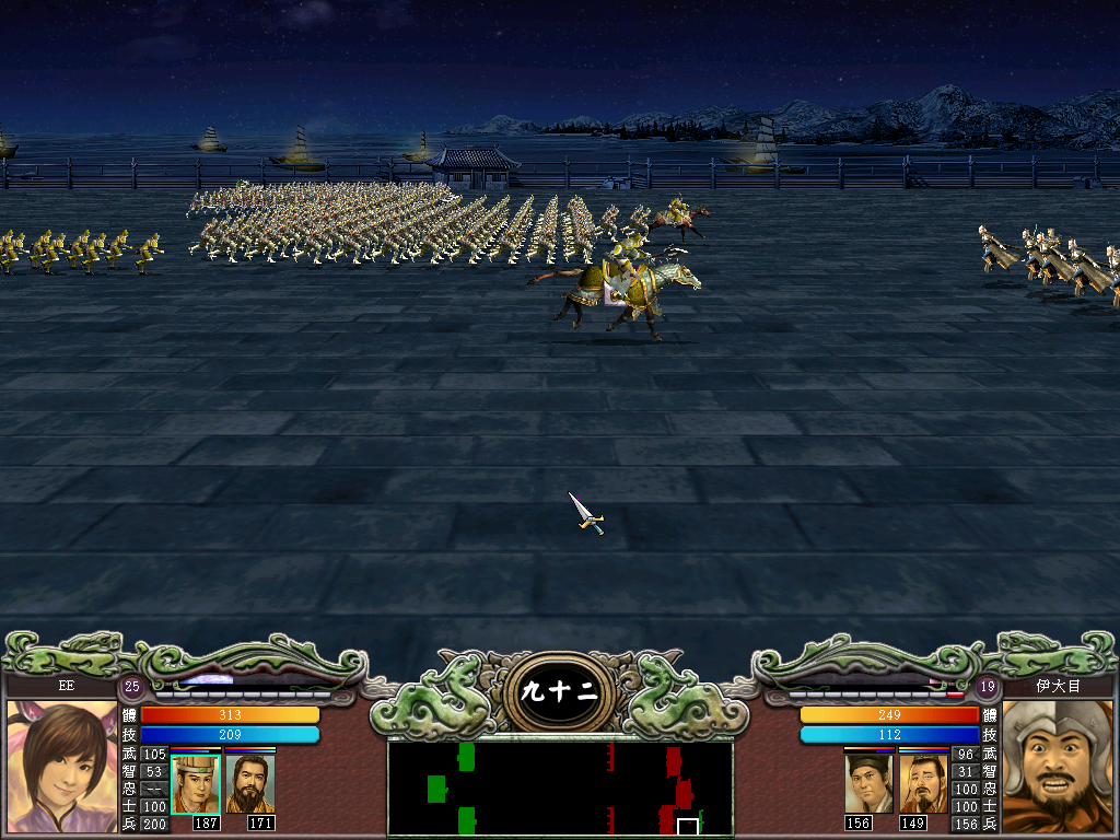 这需要玩家手动控制武将移动,来到一个合适的位置,面对摆出一字长蛇阵的敌军,一个玄冰斩下去,敌方迅速减员。