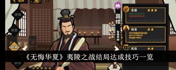 无悔华夏夷陵之战结局达成技巧是什么?无悔华夏作为一款三国剧情游戏,在这个游戏里面,每一个章节都有专属的结局可以达成,夷陵之战结局就有很多小伙伴们都没有成功达成。下面小编就来为大家详细介绍一下无悔华夏夷