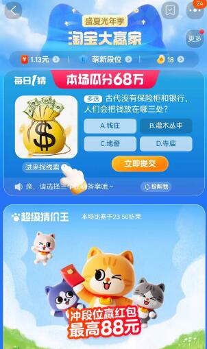 淘宝大赢家8.23的答案是什么?淘宝近期推出了全新的活动,这个活动每天都会在软件中推出一道题目,如果用户大队题目的话就可以瓜分掉问题的奖励金额,今天的奖励是68万,所以很多小伙伴每天都会在软件中参与,并回答问