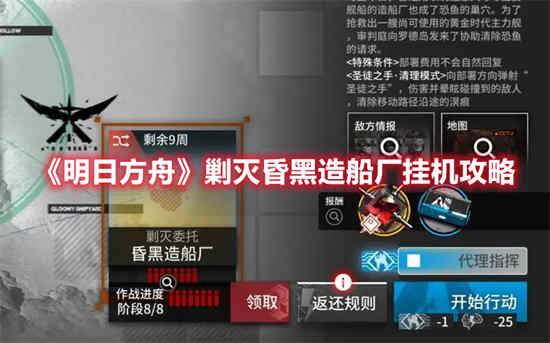 明日方舟剿灭昏黑造船厂怎么挂机?这是一款拥有高品质的角色扮演游戏,在游戏中会有很多的精彩内容在等待各位玩家前往体验。游戏中不仅有很多厉害的游戏角色可以提供给各为玩家体验,还有很多厉害的武器也是可以让玩