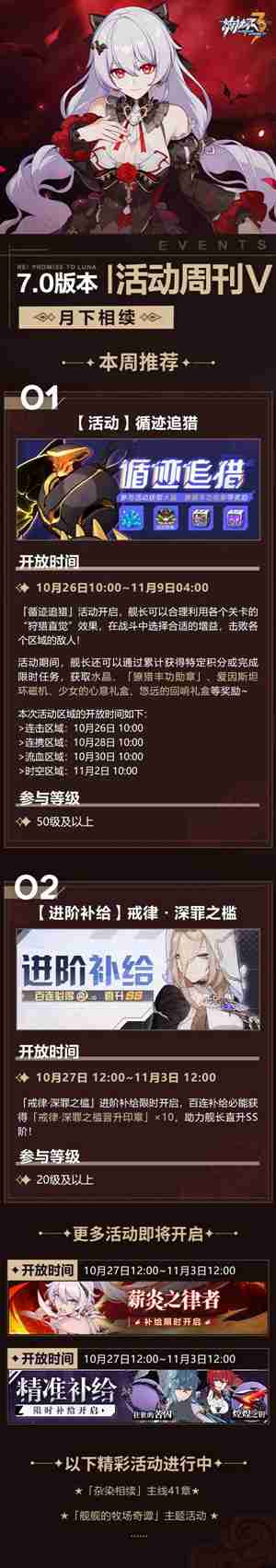 在崩坏3中,本次更新的全新版本7.0已经上线有一段时间了,依照惯例,每个版本都会有很多的活动上线,当然,这个版本也不例外,也有很多的活动带给各位舰长,大家