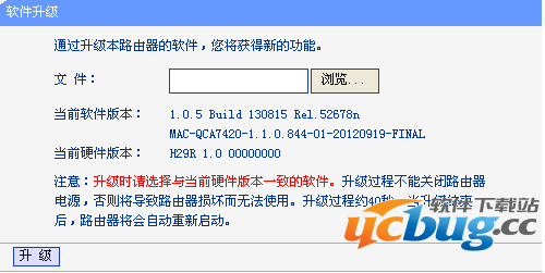 注意事项:1.升级软件必须是与当前产品型号和硬件版本一致的软件。2.升级过程中不能关闭路由器电源,否则可能导致路由器损坏。3.升级时请使用有线方式连
