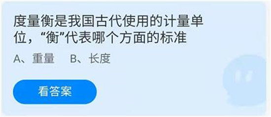在古代人都是用什么来衡量物品的呢?当时没有电子秤、没有卷尺,那么他们是这么来度量的呢?这是个问题哦,有小伙伴们知道吗?那么在蚂蚁庄园今天也有个这样的问题,就是关于古代没有度量衡这种该怎么去度量。蚂蚁庄园是