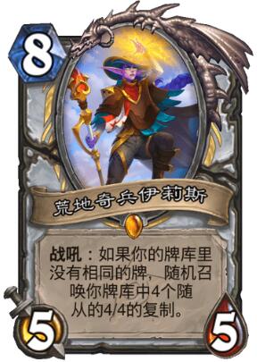 炉石传说荒地奇兵伊莉斯怎么样?每次炉石传说更新以后,在游戏商城中都将会推出新主题卡包,里面能够开出的卡牌也非常多,大家肯定会极尽所能追求传说卡的,这样都能让卡组质量变得更高。今天小编要介绍的是名字叫荒