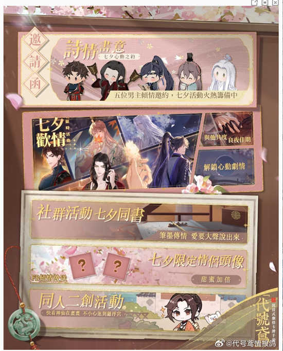 代号鸢七夕活动都有哪些内容?代号鸢作为一款新生代的女性向古风剧情冒险类手游,玩家则扮演身处乱世漩涡之中的女主角,可以不断地获取到格式各样的卡牌,通培养角色,利用策略来搭配成不同的阵容进行闯关,以主线任