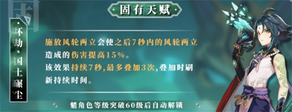 原神魈固有天赋坏劫国土碾尘机制是什么?天赋在原神中的地位十分重要,往往一个天赋就决定着角色的用法和定位,魈的这个天赋施放风轮两立会使之后7秒内的风轮两立造成的伤害提高15%。该效果持续7秒,最多叠加3次,叠加时