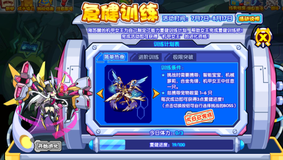 洛克王国复健训练怎么玩?复健训练活动难度一颗星,是洛克王国2023年7月7日到2023年8月17日期间的宠物获取活动,刚苏醒的机甲女王为自己制定了能力复健训练计划,帮助女王完成复健训练吧,完成活动即可获得“机甲女王”