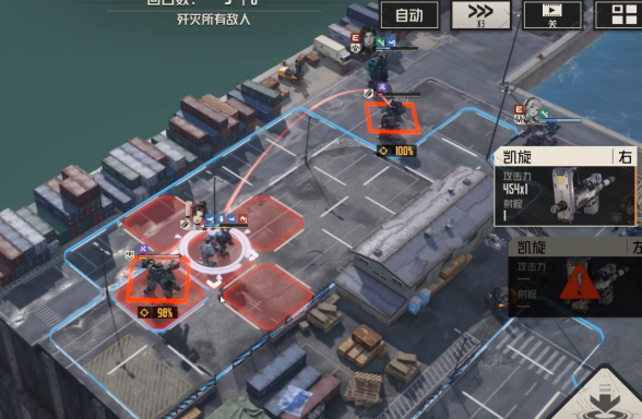 钢岚战术模拟第四章第五关怎么过?战术模拟第四章第五关的战场BUFF是自身耐久值全满时,造成伤害提升百分之百,无法驱散,敌方生效,这关难就难在本关BUFF较为棘手,在未受到伤害前,敌方对我方造成的伤害翻倍,而且本