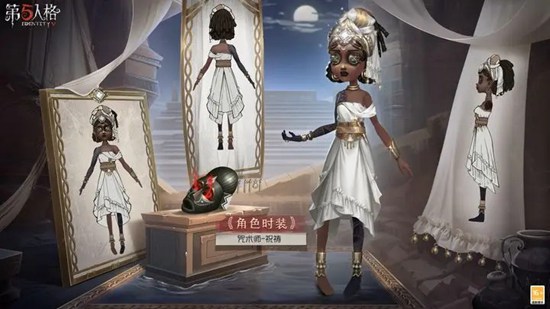 在第五人格中,全新的一款皮肤即将在下个月春节前上线,这款皮肤是咒术师的祝祷,一身白色的裙子,搭配上白色的头饰还是非常好看的,给人一种婚纱一样的感觉,那