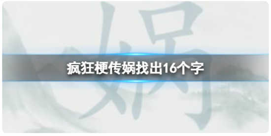疯狂梗传娲找出16个字怎么过关?疯狂梗传是一款充满乐趣味的文字解谜类游戏,有着超多的副本任务玩法,而玩法的模式也有非常多种,有时候是连线,有时候是猜歌或者找字,在带给玩家游玩的乐趣的同时,也能让玩家们增长