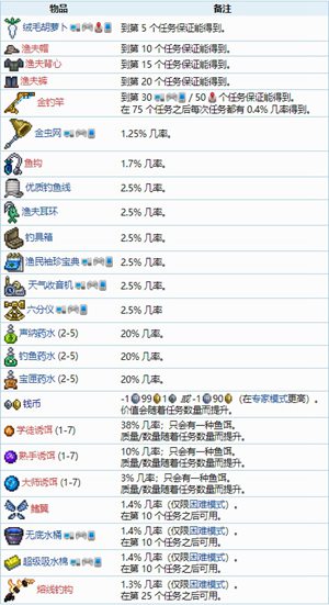 在泰拉瑞亚中,玩家们在前期就可以见到的npc之一的渔夫,这个npc是让玩家们去钓鱼然后获得奖励的,奖励内容还是挺不错的,并且还挺多,相信有很多小伙伴们不清楚渔