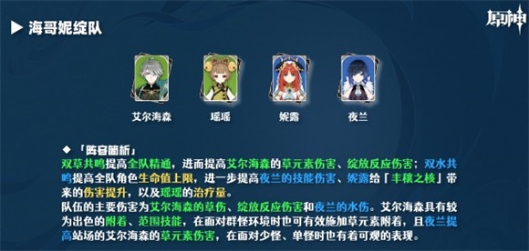 原神妮露艾尔海森绽放队怎么样?妮露和艾尔海森的配队中,因为"草克水"的元素相克关系,通常绽放反应更多地由水元素角色触发,而非草元素角色。这就意味着站场的草元素角色通常以自身草伤为主,它们的装备搭配相对较