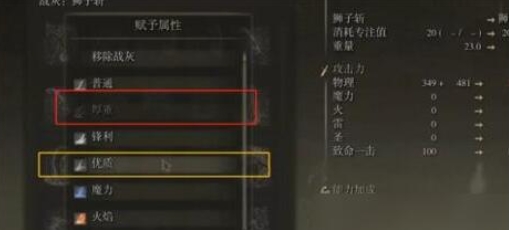 这个武器在游戏中是非常受欢迎的,因为狮子斩的属性非常强,能给我们带来的战力加成是非常不错的,不过这个武器的属性也是可以选择的,大家可以根据自己的喜好和需求进行选择属性,下面就赶紧和小编一起来看看艾尔登