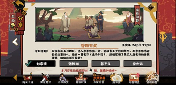 无悔华夏渔樵问答5月4日问题和答案一览,无悔华夏游戏中有很多的玩法, 其中很多人在游戏中不知道渔樵问答的5月4日答案是什么,下面跟着小编一起来看看吧。