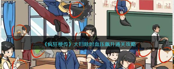 疯狂梗传是一款在抖音上很火的休闲益智娱乐类闯关游戏,其中关卡"大扫除时血压飙升"是一个看图找茬关卡,图中学生们正在打扫卫生,我们需要找出12处血压飙升的地方。下面是都市小编为大家带来的攻略…
