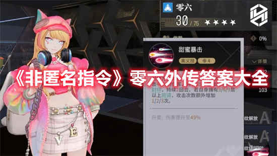 非匿名指令零六外传答案是什么?这是一款拥有高品质的角色扮演手游,在游戏中会有很多精彩的游戏内容在等待各位玩家前往体验。游戏会不断的解锁相关的活动,可供玩家们在线参与,玩家们完成相关的任务之后,就可以收