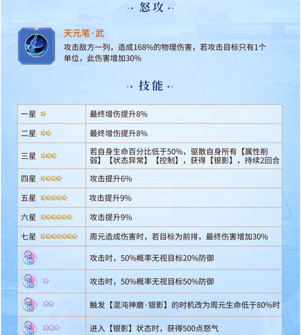 元尊手游周元技能是什么?天地间有大气运,拥有者皆为天骄,而气运,可助人,可镇国,可救世,大周太子周元出生时,身具前途无限的“圣龙气运”,但其属国大武因一则预言“蟒雀吞龙,大武当兴”,便悍然反叛兵临城下