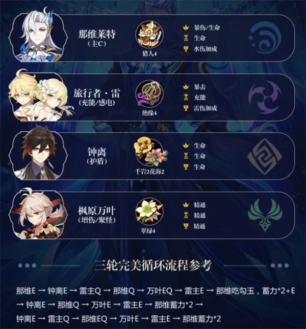 原神那维莱特四色队怎么配队?钟离是一位擅长使用护盾和战技的角色,他可以通过战技施放护盾,以防止敌人打断那维莱特的输出。他的护盾还可以降低激人元素抗性,从而增加那维莱特和其他队友的元素反应效果。枫原万叶