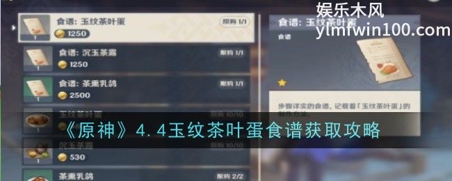 原神玉纹茶叶蛋食谱在哪获取?原神这个非常不错的自由冒险类型的游戏,有更多的游戏冒险方式和全新的搭配阵容也都是可以邀请更多的好友一起玩的,里面更好理解的内容掌握也都是可以直接玩家来进行冒险的,