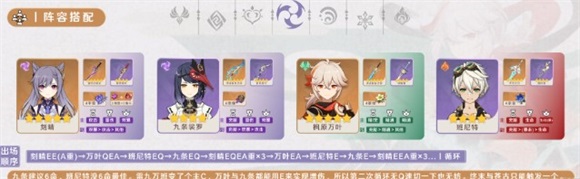 原神枫原万叶刻九万班怎么搭配?“刻九万班”是“雷九万班”的变型,这个队伍同样需要九条6命支持,因为九条是刻九万班的核心角色之一,没有九条可用钟离来提高输出环境,也可以用夜兰来提高输出伤害,还有行秋和北