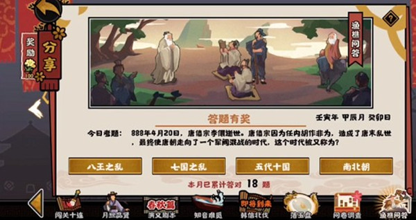 无悔华夏2022年4月20日渔樵问答答案一览,无悔华夏游戏中有很多的玩法,其中很多人在游戏中不知道今天的渔樵问答答案是什么,下面跟着小编一起来看看吧。