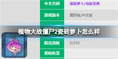 植物大战僵尸2瓷砖萝卜怎么样?是不是还有小伙伴不知道植物大战僵尸2瓷砖萝卜应该如何进行使用呢?是不是还有很多小伙伴还不知道植物大战僵尸2中的瓷砖萝卜属性技能呢?那么我们应该如何使用植物大战僵尸2池中萝卜的