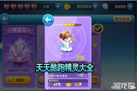 天天酷跑精灵大全我为小伙伴们带来了,相信大家对这个系统玩法一定非常感兴趣吧,那么游戏中有多少个呢,又有什么作用呢,本期为小伙伴们带来的资料将会为小伙伴们一一展示,希望大家看后能够有所帮助。关于JL1.登场效果登场效果也是就是需要玩家携带在身边,和玩家一起奔跑,其效果才会发挥作用,就像携带宠物,宠物的加成效果才会发挥作用一样。升级JL可以提