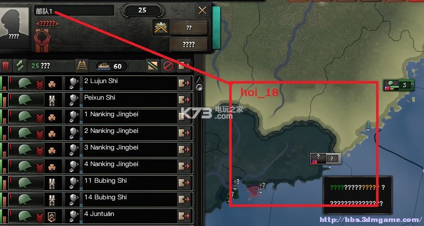 6.hoi_18军团名称显示 7.hoi_20bs地图选择国家选择国家后,顶部显示的国家部分属性面板如国家名称、领导、理念、政府、下一次选举、执政党技术面板各技术点图标上的文字如 "基础装备 "、 "武器I "及标题,如 "步兵装备I "地图上胜利点的名称