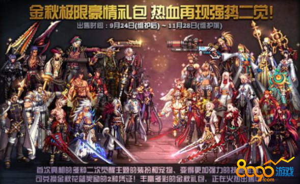 国庆将近,相信很多DNF的小伙伴们最关心的莫过于这次国庆套礼包里会有哪些东西了,我就带大家一起了解一下。 这次国庆套是在9.24号维护后开始发售,售价33800点卷,礼包包含: 二觉豪情装扮一套,共9件。 梦幻克隆装扮一套,一共8个部位。 金秋徽章一个:可以选择无敌至境(+物攻,魔攻,独立攻击,1-50级技能+1)或者超神之境(+物攻,魔攻,独立攻击