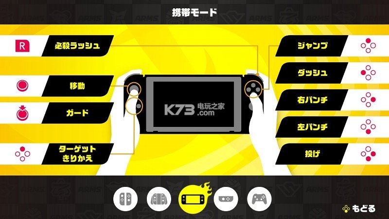 arms这款任天堂的创意游戏已经发售了几天了,这款游戏在操作方面设置方面是比较复杂的有着多种,下面就简单介绍一下。移动:双 Joy-Con 同时往一边方向倾斜防御:双 Joy-Con 朝内倾斜挥拳:单手 Joy-Con 挥出(仅需稍稍往前摆动)抓技:双手 Joy-Con 同时挥出(仅需稍稍往前摆动)冲刺:L 键跳跃:R 键必杀:ZR 键切换目标:左手 Joy