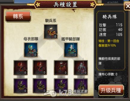 最近一片叁国洗版,这类型的抽卡游戏除了之前的恋爱游戏让人眼睛一亮之外,这款也总算是让人从叁国梦裡面爬出来了orz。如果跟我一样只知道日本战国时代有忍者跟武士的人来说,要有个培育武将的方向应该很难吧~因此我稍微把坦补打整理在下面。基础兵种总共有4个:骑兵、足轻、弓手和浪人可以看到部分兵种有两个发展方向,到20等时研究所会发展出西洋跟日本东洋的