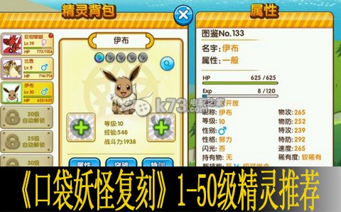口袋妖怪复刻在各等级我们可以捕捉 入手的精灵有限,这里分别整理给大家,可以对照之前的。各系强力精灵:k73.com1-19级:灯笼鱼(胆小 1号水域18:00~6:00 ) 推荐指数:★★★☆└------进化 点灯怪 (材料:雷石15个)└------建议 水电双属性,本身打击面广,自身属性虽然差一点,但是血量还可以,尤其前期有较大优势└------推荐技
