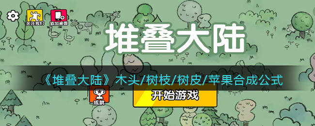 在堆叠大陆是一款全新的合成卡牌放置生存手游,游戏中第二卷飞向宇宙涉及了许多合成配方,那么木头 树枝 树皮 苹果怎么合成呢?接下来就让我给大家介绍一下抖音小游戏堆叠大陆木头 树枝 树皮 苹果合成公式,感兴趣的小伙伴们一起来看看吧。堆叠大陆木头 树枝 树皮 苹果合成公式 " >堆叠大陆木头 树枝 树皮 苹果合成公式木头 树枝 树皮 苹果:1树,1村民第二章合成表