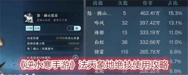 给大家带来了逆水寒手游法天象地绝技使用攻略分享,法天象地绝技0阶可用打桩很强,每个大招近百万伤害,虽然施法时间比较长但架不住数值高!更适合秘境和多怪环境,且你秒伤越低伤害占比越高,变身之后直接使用大招然后正常技能循环或一键连招即可。逆水寒手游法天象地绝技使用攻略1、逆水寒手游法天象地绝技0阶可用打桩很强,每个大招近百万伤害,虽然施法时