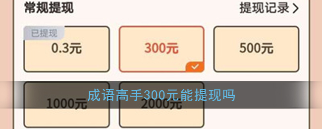 成语高手是一个通过做任务玩游戏就能赚钱的平台,而且这个游戏中赚钱也是比较快的,所以很多玩家都有在玩。那么成语高手300元能提现吗?成语高手300元提现是真的吗?下面我就为小伙伴们带来了详细的介绍,我们一起来了解下吧!成语高手300元能提现吗 " > 成语高手300元能提现吗?1、首先,新人首次注册成语高手登录答题会送一个二十三元左右的红包,但是只能提现0.3