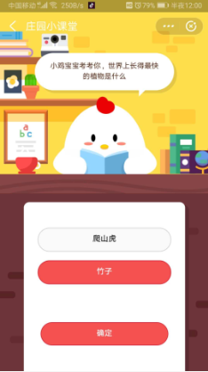 支付宝蚂蚁庄园小课堂5月26日每日一题答案是什么?支付宝蚂蚁庄园小课堂每天的凌晨更新一道题目,答对后能领取小鸡饲料,的问题是“世界上长的最快的植物是什么?”不知道答案的朋友不妨随三大妈我一起来看看吧。 庄园小课堂往期答案汇总 问题:世界上长的最快的植物是什么? 爬山虎竹子正确答案:竹子 蚂蚁庄园介绍蚂蚁庄园是支付宝客户端上线的一款爱心活动,使