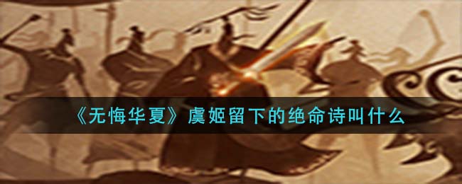 在无悔华夏游戏中很多玩家还不清楚,虞姬留下的绝命诗叫什么。无悔华夏虞姬留下的绝命诗叫什么 " >无悔华夏渔樵问答4月6日答案本题答案选:和垓下歌无悔华夏虞姬留下的绝命诗叫什么 " >解析:和垓下歌又名和项王歌,是垓下之战四面楚歌之际虞姬对项羽最后的诀别,原文为:汉兵已掠地,四方楚歌声。大王意气尽,贱妾何聊生!部分玩家可能会把和垓下歌与垓下歌搞