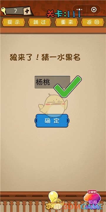 近日许多小伙伴加入了微信最强大脑大乱斗这款十分有趣的益智闯关游戏,丰富多样的关卡,强大跳跃的脑洞更吸引着大量玩家一起征战,全游戏关卡类型多样,通关方式各不相同,关卡解锁关连关,促使玩家不断闯关。那么微信最强大脑大乱斗第111关狼来了!猜一水果名是怎样通关的?下面就让我们来看看本关的通关攻略吧。微信最强大脑大乱斗第111关通关攻略 最强大脑大乱