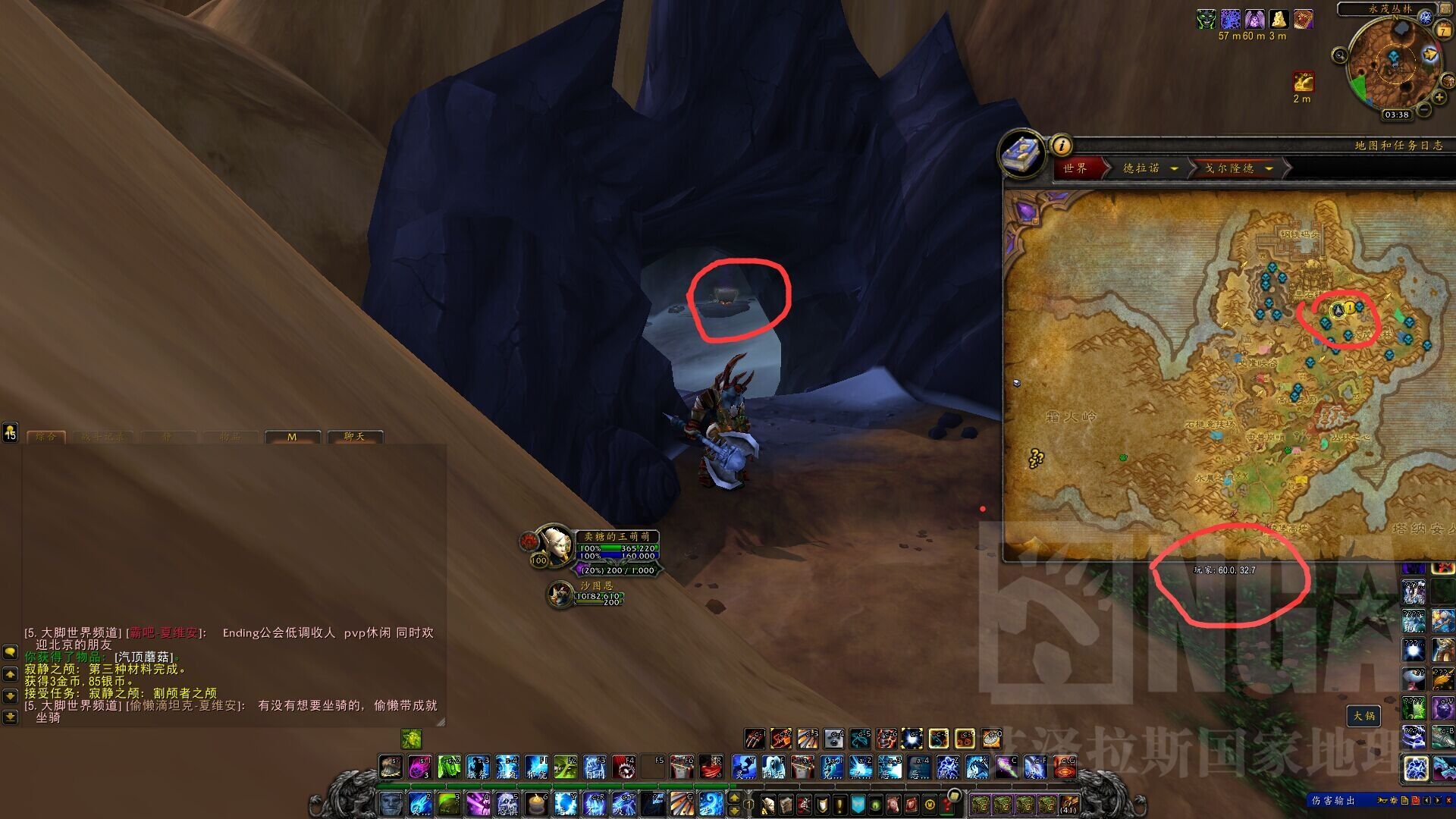 [寂静之颅:割颅者之颅]戈尔隆德 永茂丛林(60.0,32.7)到洞穴内点击 大锅 炼制嘲颅药剂后再次点击 大锅 饮用(如图1),然后与洞穴入口处的NPC“辉鳞掠食者”对话,让它带路(如图2)。路上注意躲开黑色的气旋,视角调成俯视(如图3)。跑到图4位置后点击NPC古拉克,它会载玩家飞到割颅者处,击杀NPC拾取任务物品即可(如图5)。