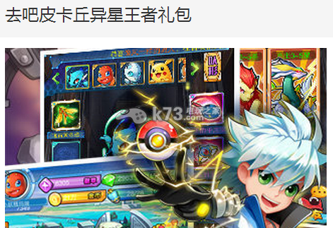 去吧皮卡丘中之前更新了异星战场,感觉就是给vip准备的嘛,不过相应的礼包还是不能错过的,下面带来异星礼包领取方法。礼包内容金币*200000四星宠物蛋*1高级体力药水*1高级行动药剂*1黑市货币*1使用方法就不用介绍了吧...不过数量有限,大家快去领取吧。领取地址:k73传送门上文即是去吧皮卡丘异星礼包领取方法的内容了,文章的版权归原作者所有,在此仅作网络免