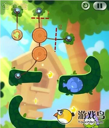 割绳子2森林26关大家是不是觉得很难啊,现在为小伙伴们带来割绳子2森林26关攻略快速过关图文教程相信大家看过之后就可以很快的过关了,还在等什么呢。1、如下图标注的顺序割断绳子。2、到达下图所示位置,木头小车在左下侧停留住,然后割断糖果的绳子,让糖果下落。3、再糖果经过中间缝隙的时候按下蓝色气囊,使糖果到达木头小车上,如下图所示。4、最后割断木头