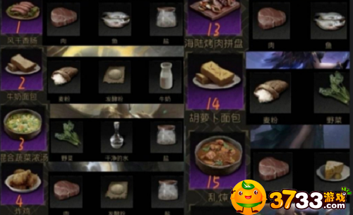 地下城堡3魂之诗有什么食物?游戏中最近新增了不少新的菜肴,很多玩家不知道需要哪些食材可以制作,下面我就为小伙伴们带来魂之诗食谱大全。 1、风干香肠:肉+鱼+盐 2、牛奶面包:麦粉+发酵粉+牛奶 3、混合蔬菜浓汤:野菜+干净的水+盐 4、炸鸡:肉+发酵粉+盐 5、发酵饮品:麦粉+发酵粉+干净的水 6、水果馅饼:麦粉+水果+盐 7、鸟肉馅饼:麦