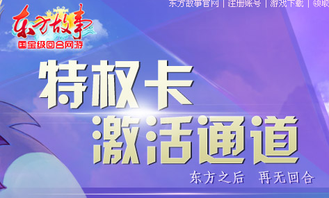 东方故事公测礼包、媒体特权卡现在是火热方法中。因为还没有开测,所以玩家们只能首先获得东方故事礼包激活码,然后才能领取礼包。那么怎么激活特权卡获得相关奖励就是马上要分享的内容。 很简单,首先玩家们如果想要获得东方故事媒体特权卡或者是公会特权卡等等,需要找到相应的特权卡发放页面,并且点击领取获得特权卡激活码。 然后玩家们需要到东方